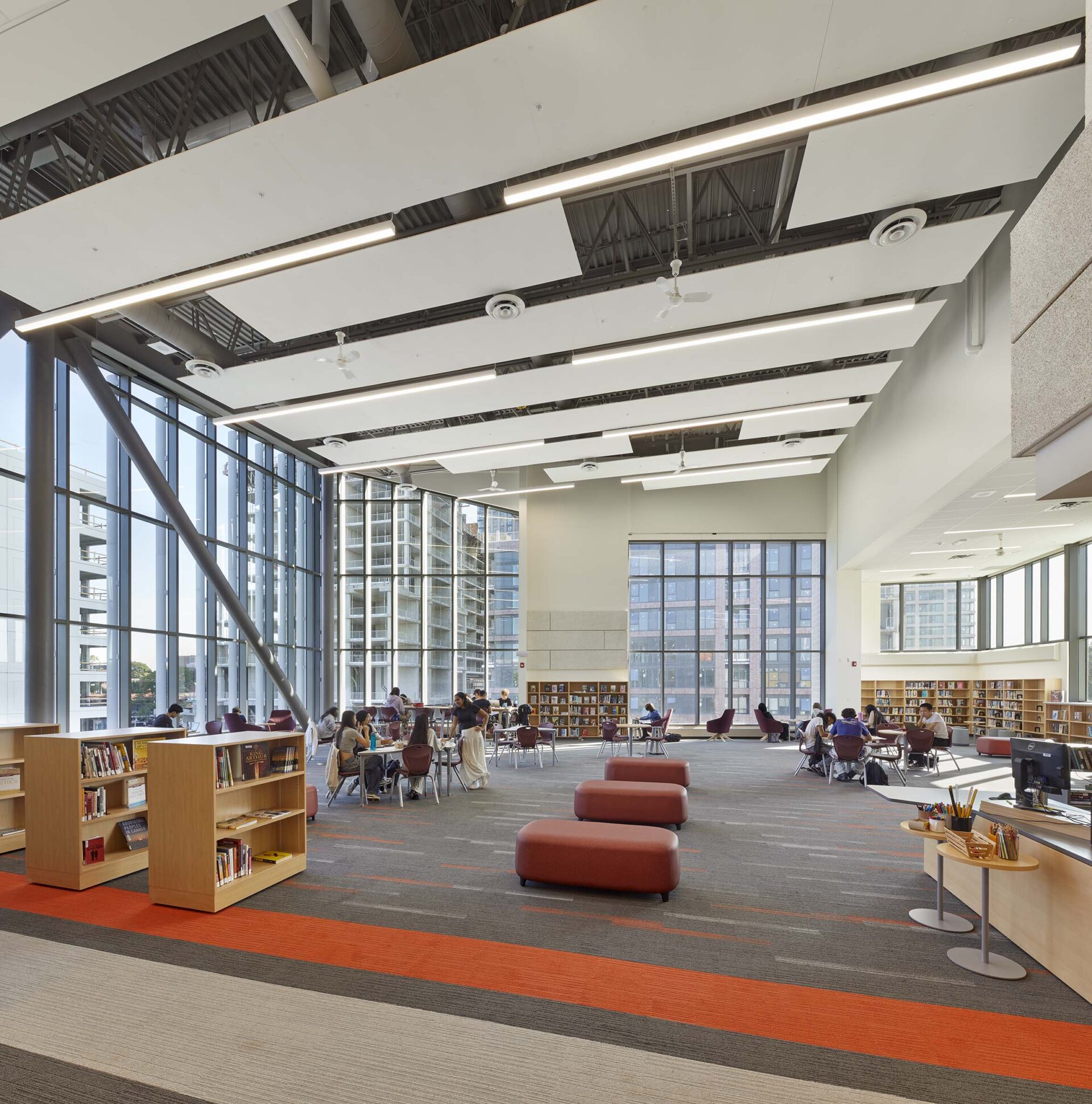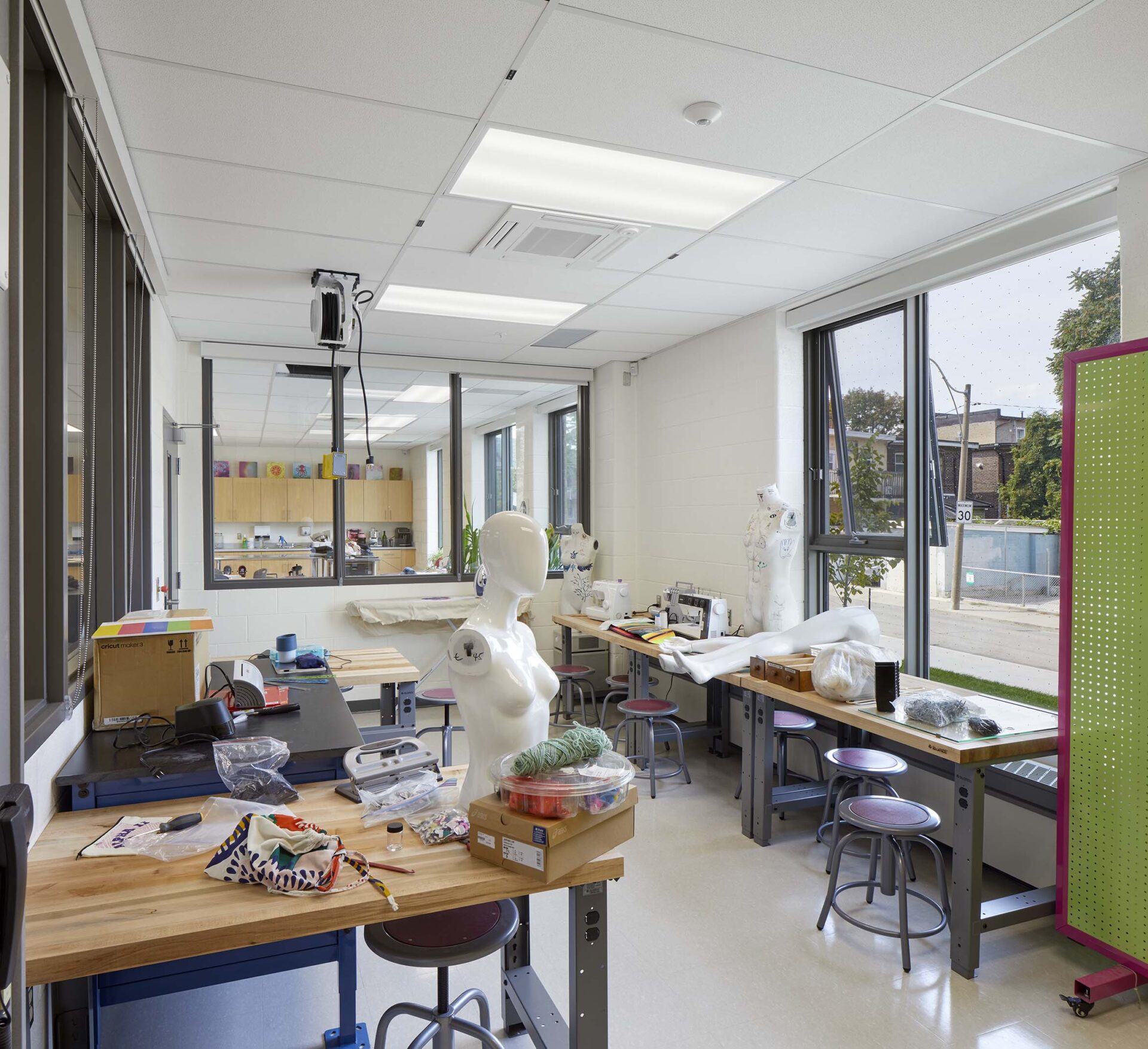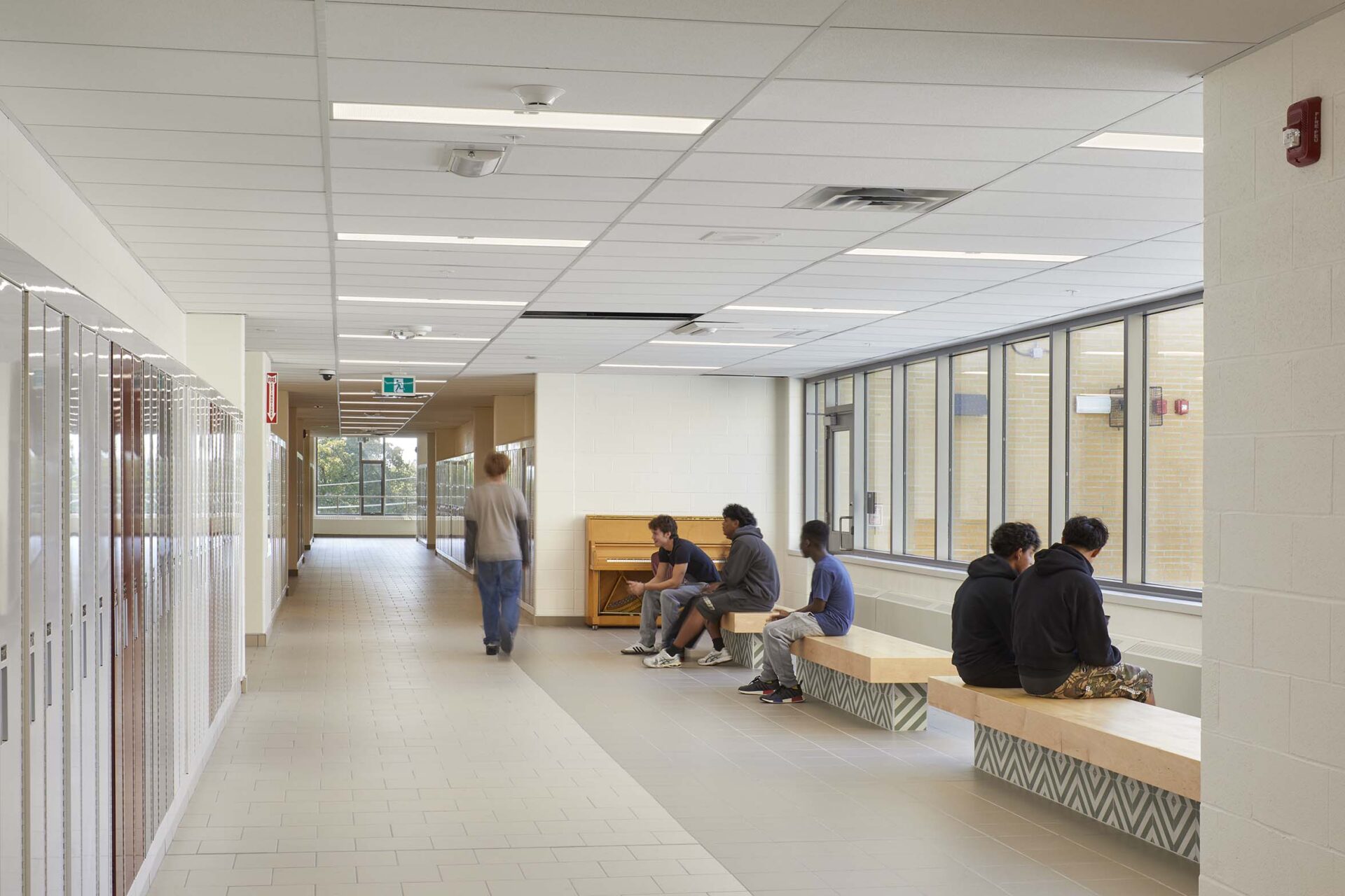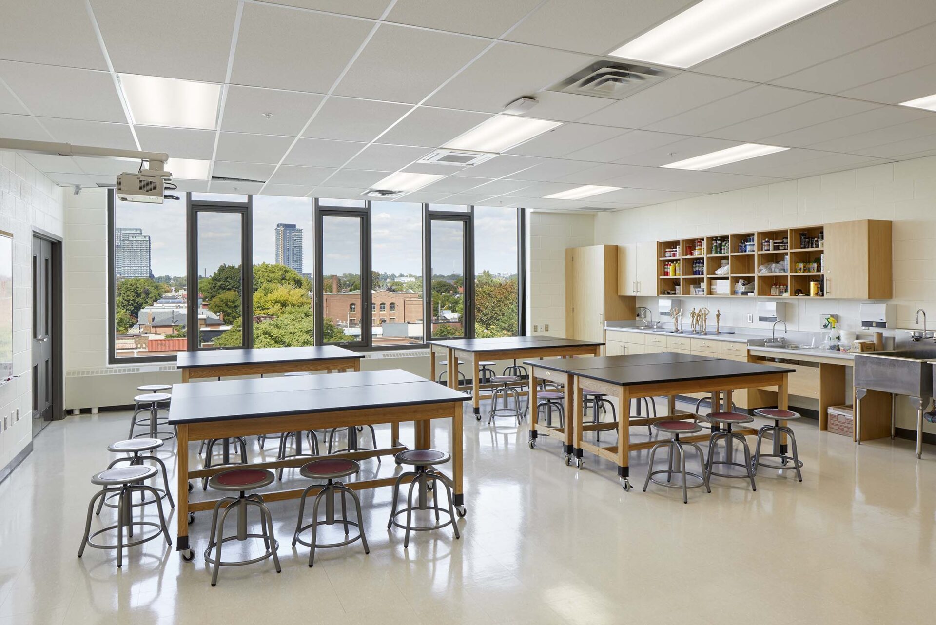 Completed in celebration of Bloor Collegiate Institute’s 100th anniversary, the new four-storey, 160,000 square foot facility with an additional level below grade marks a bold new chapter for both Bloor CI and ALPHA II Alternative School. The reimagined campus integrates a wide range of academic and creative learning spaces, including automotive and woodworking shops, specialized science and biology laboratories, a triple gymnasium, and expansive learning commons anchored by a grand atrium that encourages student interaction and collaboration. Exterior program areas include landscaped learning zones, full-size basketball courts, and extensive site works tying into adjacent municipal sidewalks and roadways. Below grade, the facility houses a 40-vehicle parking garage, a cistern holding tank, and dedicated mechanical, electrical, and storage spaces. Architecturally, the building’s warm material palette of masonry, curtain wall, and metal panels harmonizes with the surrounding urban context, while the dramatic north entrance canopy and double-height Learning Commons along Bloor Street express a strong civic identity. Inside, the student-focused design emphasizes natural light, flexibility, and community through spaces such as a multi-use cafetorium, amphitheater seating, and self-directed learning environments for ALPHA II students. Together, these elements create a vibrant, inclusive educational setting that supports both academic excellence and creative exploration.